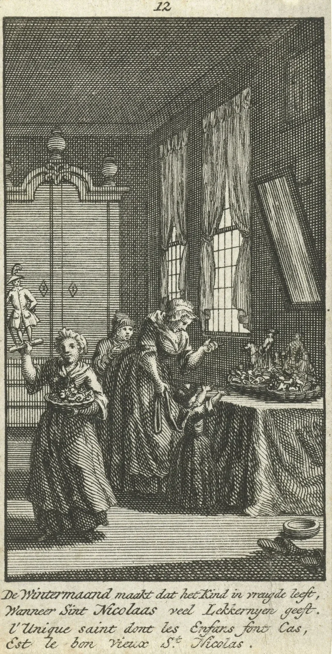 In de Lage Landen ontstond het gebruik vanaf de 15de eeuw dat de kinderen hun schoen mochten zetten in de kerk. Volgens de archieven van de Sint Nicolaaskerk in Utrecht wachtte men al in 1427 vol spanning af wat ze ’s ochtends in hun schoeisel zouden aantreffen. Het gebeurde destijds nog niet thuis bij de open haard, maar in de kerk, door de armen. De rijke bevolking vulden hun schoenen en de opbrengst werd de volgende ochtend, op 6 december, verdeeld.
